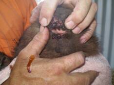 She was 18kg, barely moving, blood from her mouth and nose and having trouble walking when she moved at all. Her mouth was cold and she showed little interest in anything. She would not eat or drink and it was uncertain if she would even survive the night.